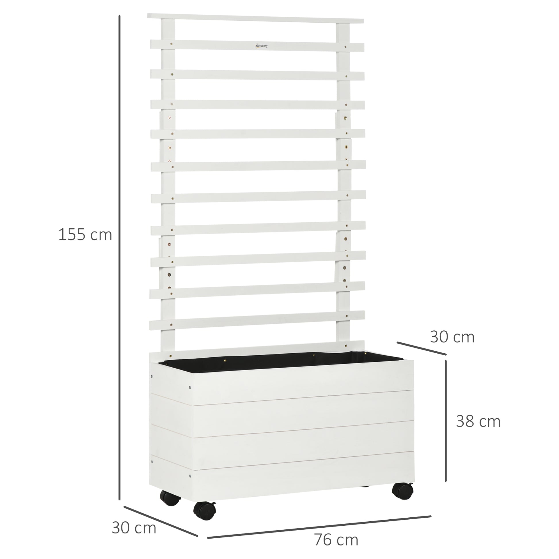 Outsunny plantenbak met trellis, 4 wielen, natuurlijk hout, weerbestendige afwerking, wit, 76 x 30 x 155 cm