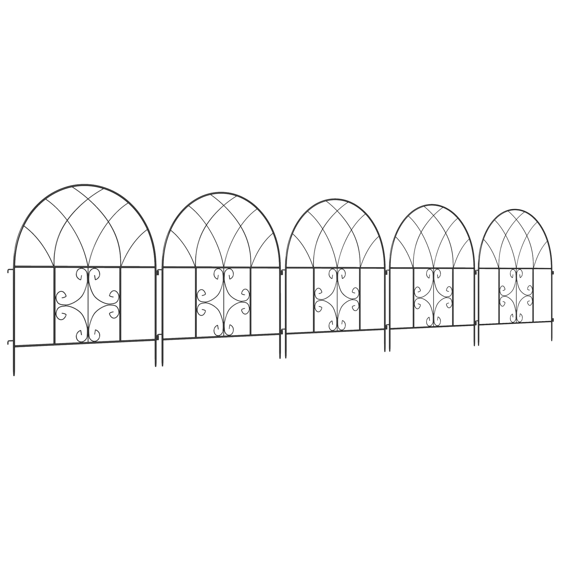 Outsunny Tuinhek, Staal, 300 cm x 70 cm Hoog, Decoratieve Gaas Hekset, Hekelementen, Zwart