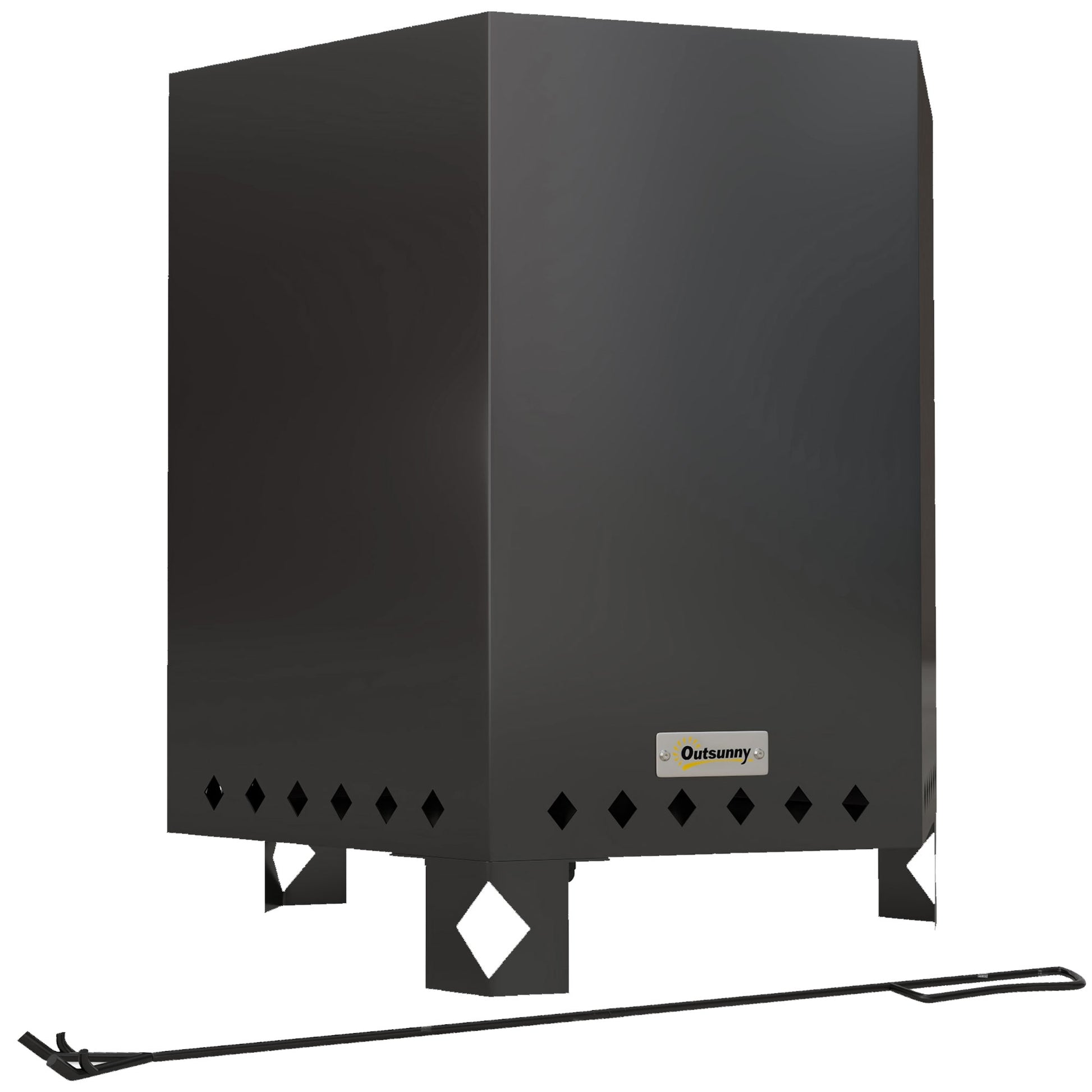 Elegant, stijlvol en zeer handig is de Outsunny vuurplaats. Het is gemaakt van poedergecoat metaal en is van binnen van roestvrij staal gemaakt, stevig en hittebestendig. De vuurmand heeft een rookvrij secundair verbrandingssysteem: zuurstof wordt van onderaf aangevoerd en passeert tussen de muren om een sterke en krachtige verbranding te garanderen – een rookvrije, rustieke buitenervaring. Dat mag niet missen op een tuinfeestje.