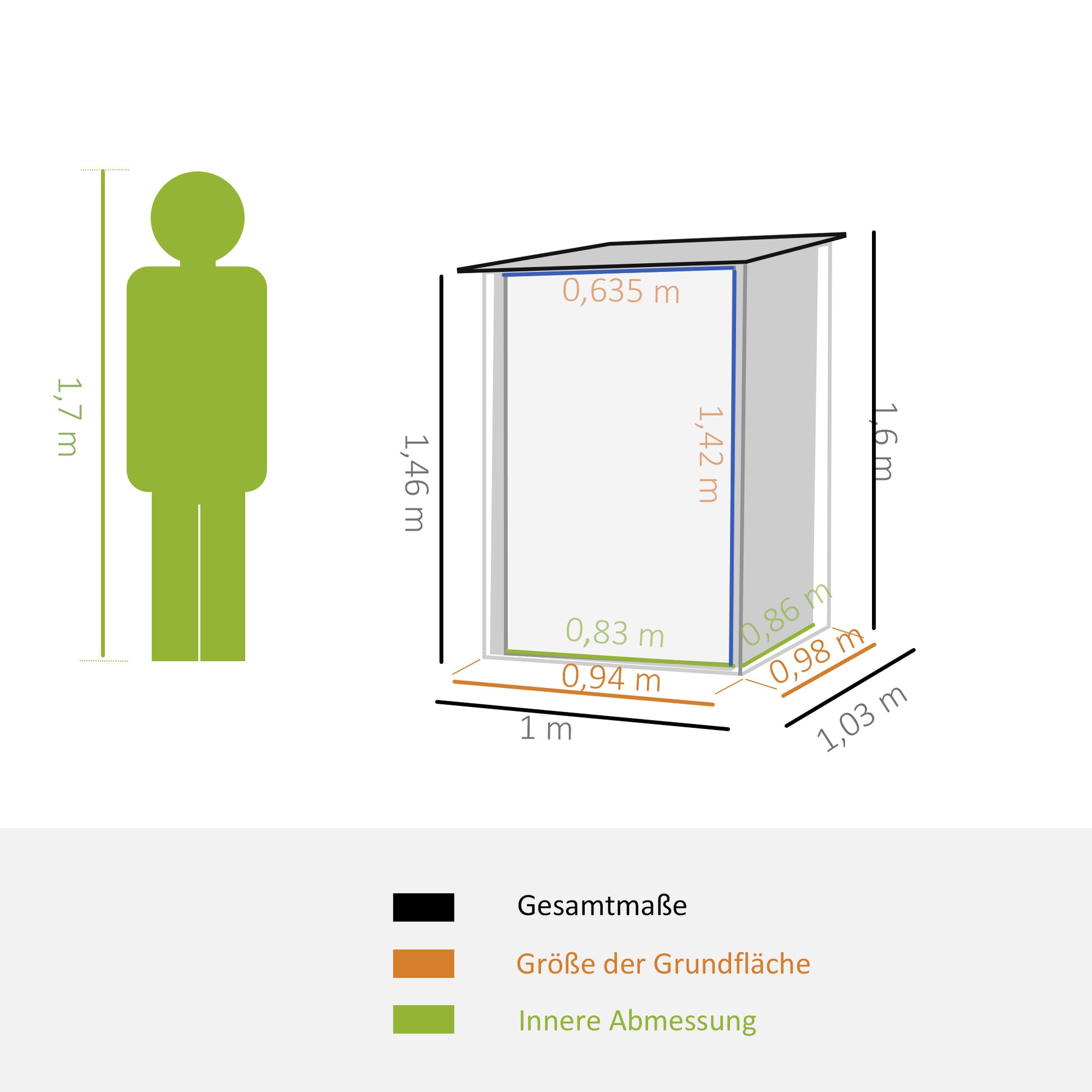 - Creëer een paradijselijke orde in je tuin met behulp van dit grote tuinhuisje van Outsunny! Ondanks het compacte ontwerp biedt het volop ruimte voor een breed scala aan apparaten en gereedschap. Gebouwd van stevig staal en afgewerkt met een weerbestendige coating, zal deze tuinkast je lang betrouwbaar van dienst zijn. Het hellende dak laat regenwater ongehinderd weglopen en de afsluitbare deur voorkomt dat dieren binnenkomen.