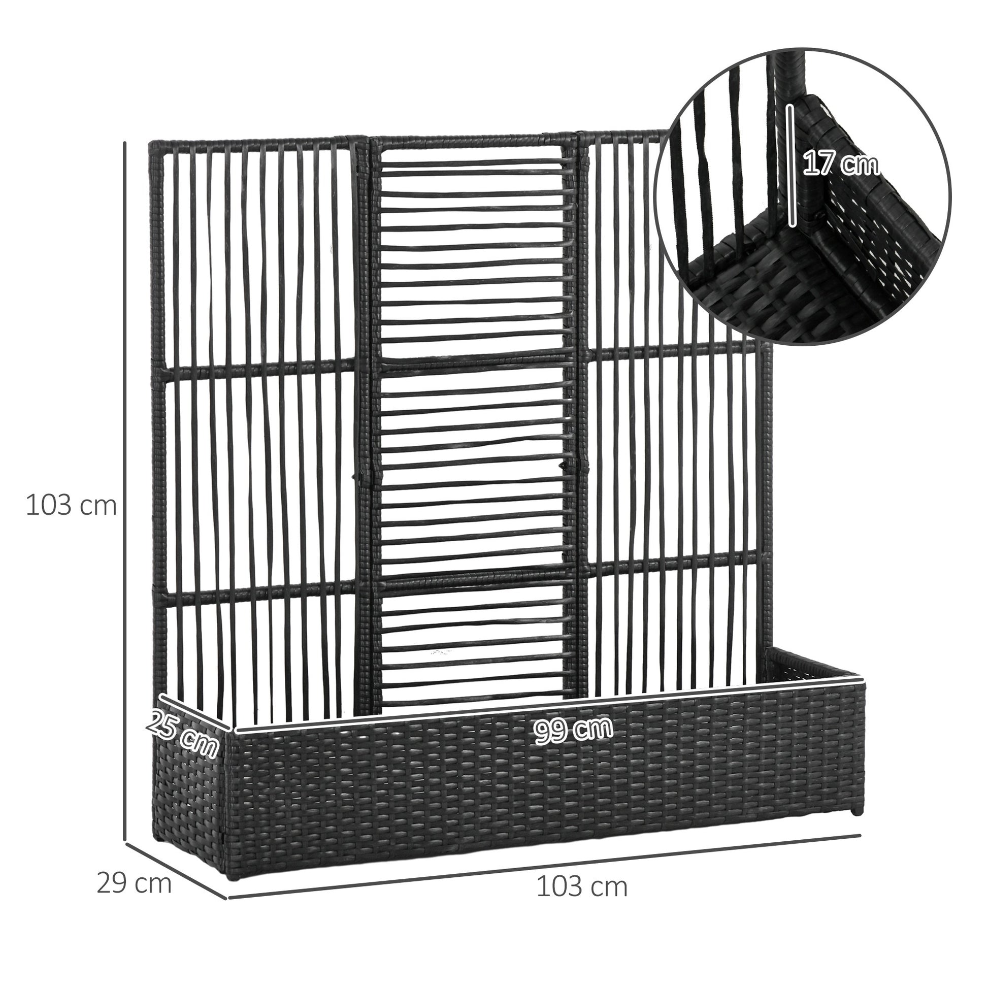 Outsunny bloembak met trellis, weerbestendig, polyrotan, 103 x 103 x 29 cm, zwart