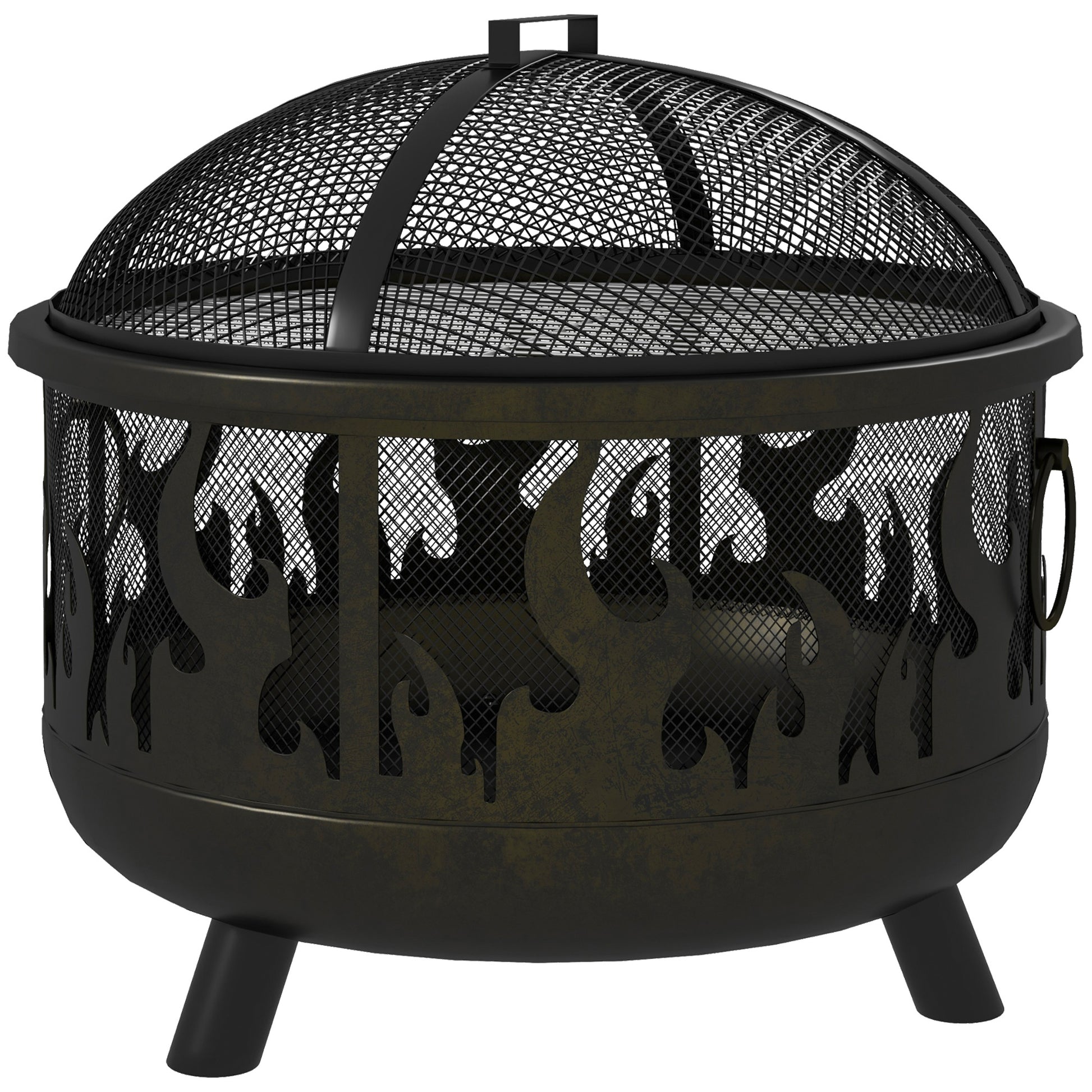 Outsunny Fire Bowl Vuurkorf, incl. vonkenscherm, 1 pook, Ø61,5 cm x 52 cm, Zwart