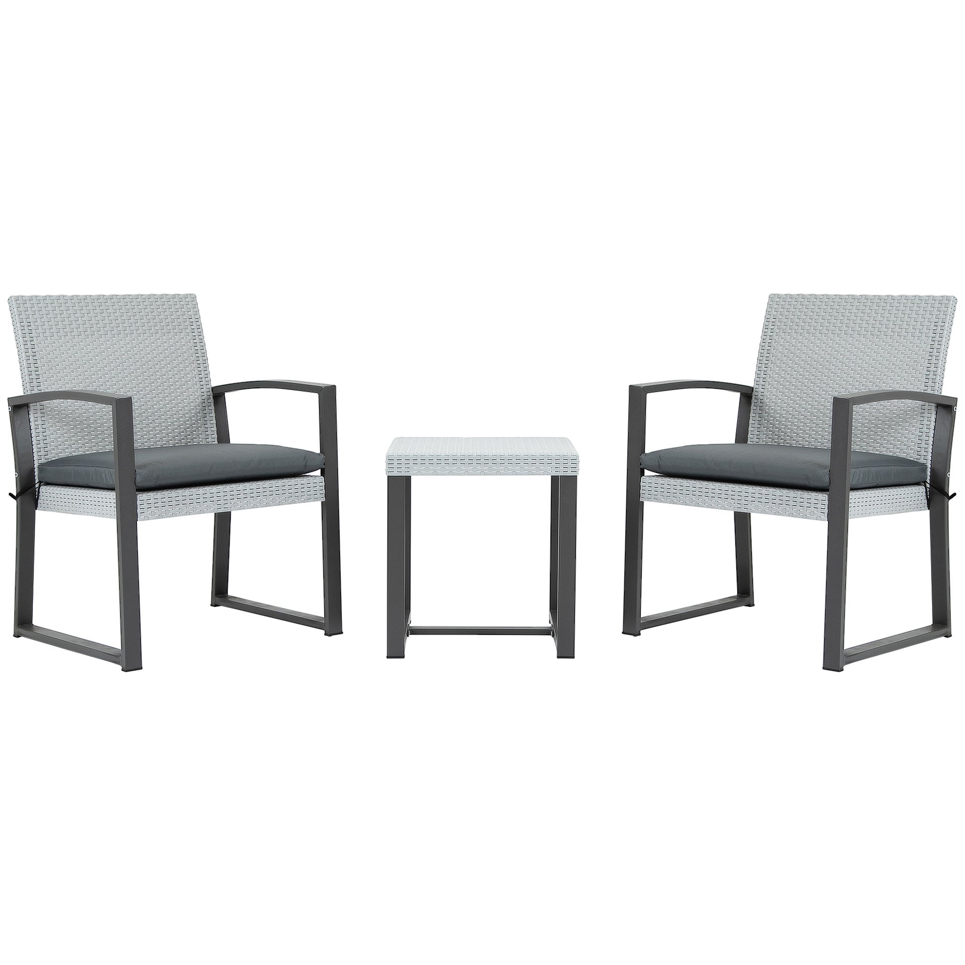 Outsunny polyrattan zitgroep voor 2 personen, balkonmeubelset met bijzettafel en zitkussens, staal, zwart en grijs.