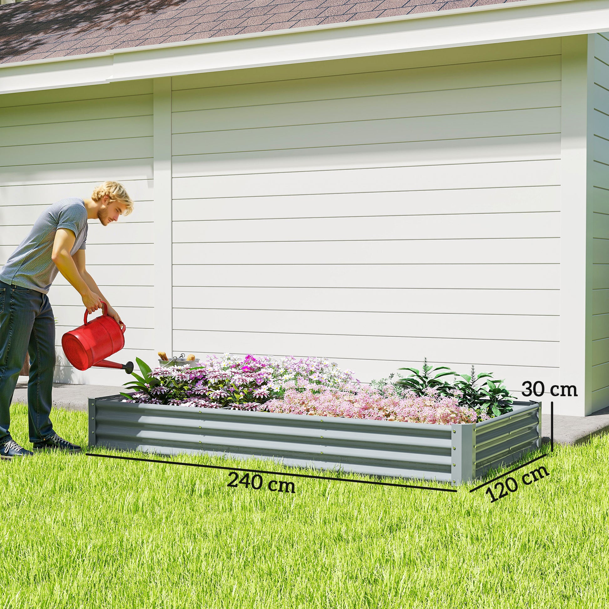 Ervaar tuinieren op een nieuwe manier met het Outsunny verhoogde bed voor tuin. Met een diepte van 30 cm biedt dit verhoogde kruidenbed ruimte voor 828 liter grond, ideaal voor middelgrote tot diepgewortelde planten. Het gegalvaniseerde staal met poedercoating is roestbestendig en uiterst weerbestendig. Stabiliserende binnenbalken en hoekversterkingen, evenals een open vloer met optimale drainage van het bloemperk, ondersteunen een krachtige plantengroei.