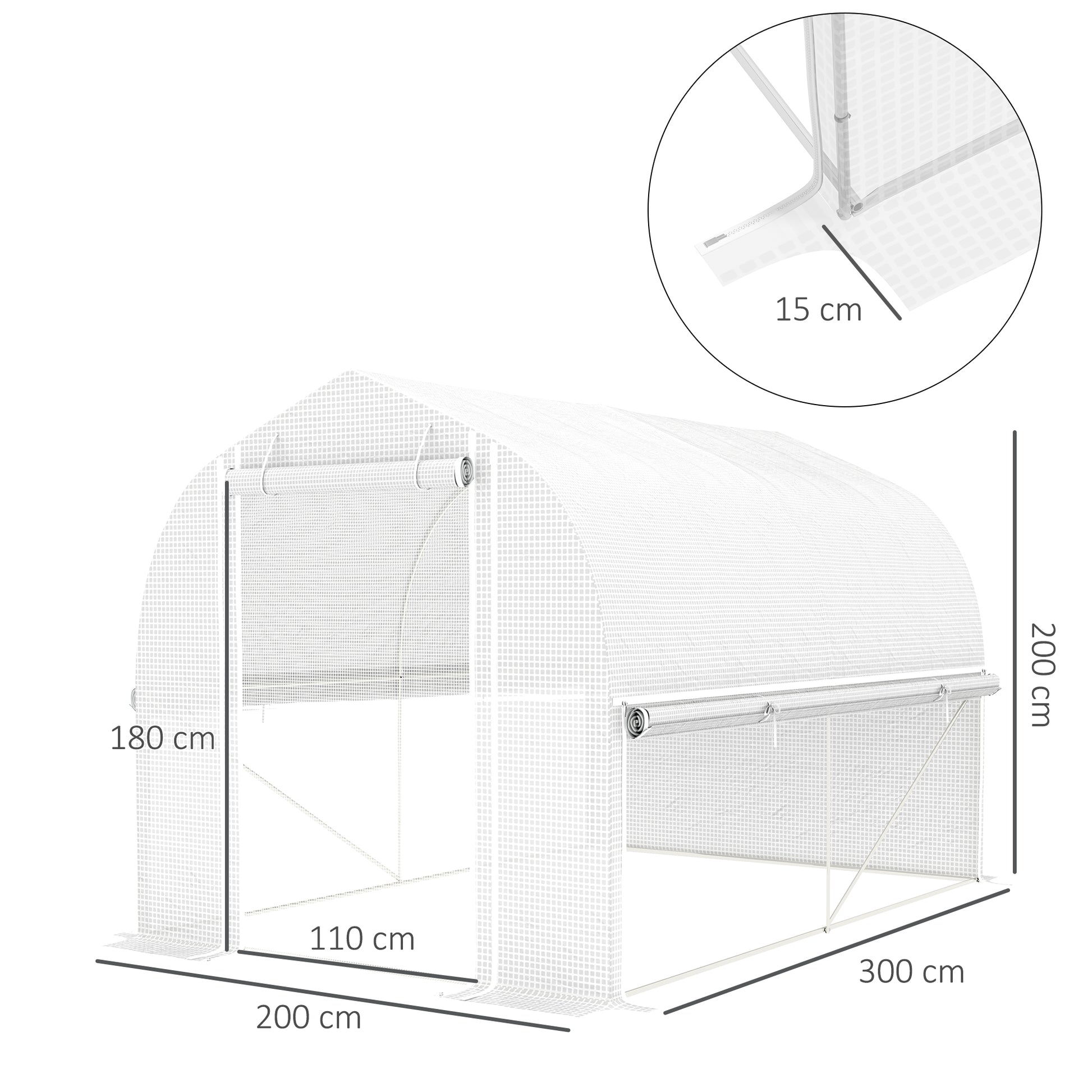 Outsunny 3 x 2 x 2 m tunnelkas met oprolbare zijwanden, UV-bestendige kunststof afdekking en stalen frame, wit
