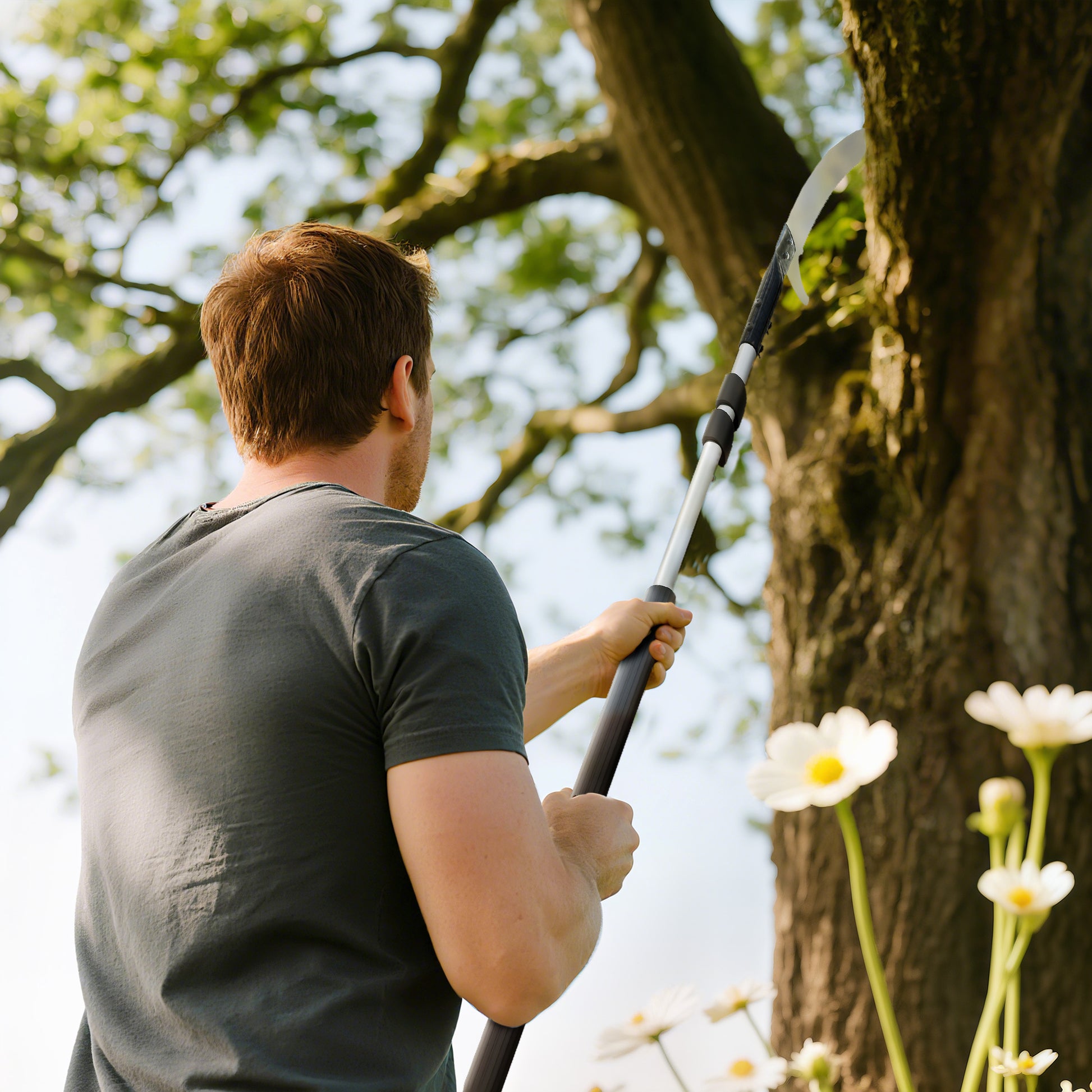• Het gepolijste stalen blad van de snoeischaar is roestbestendig en zorgt voor duurzaamheid. Dubbele veiligheidssloten van de snoeizaag maken het mogelijk het blad snel en stevig vast te zetten. Haakbladen op het blad ondersteunen het efficiënte verwijderen van takjes en takken.