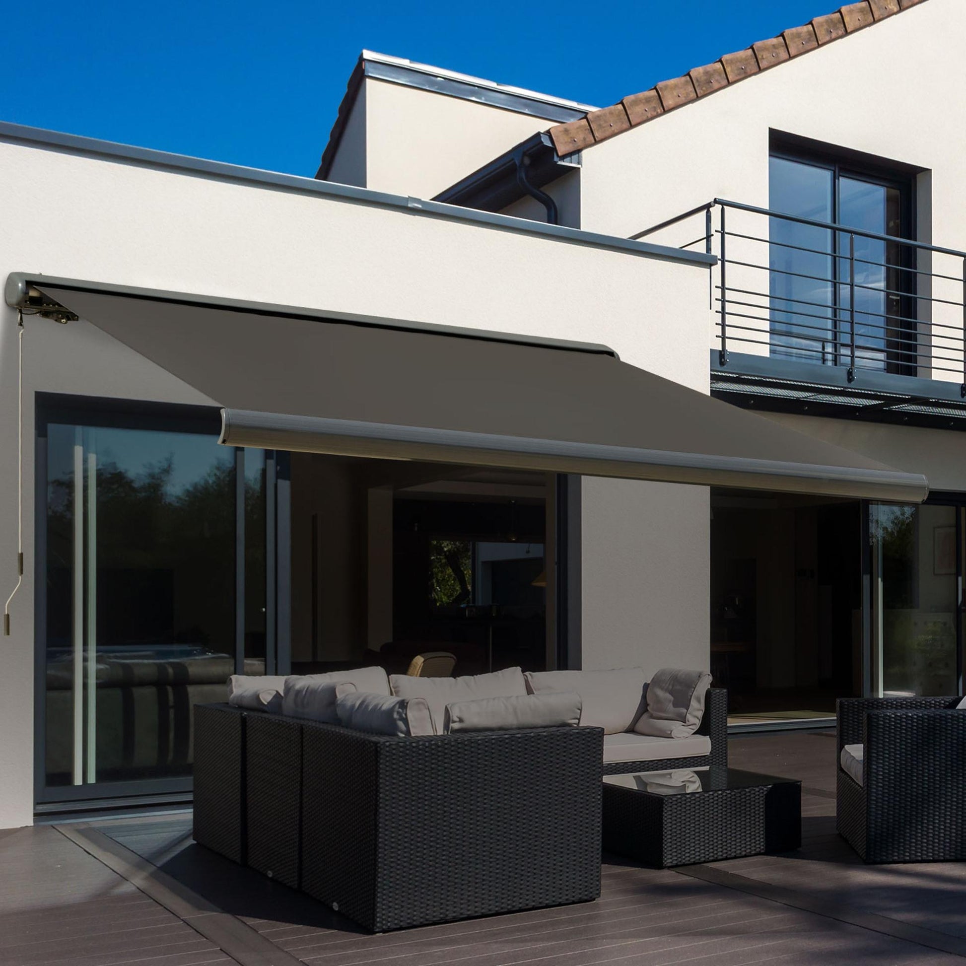 - Elektrische luifel, ideaal als zonnescherm boven deuren of ramen