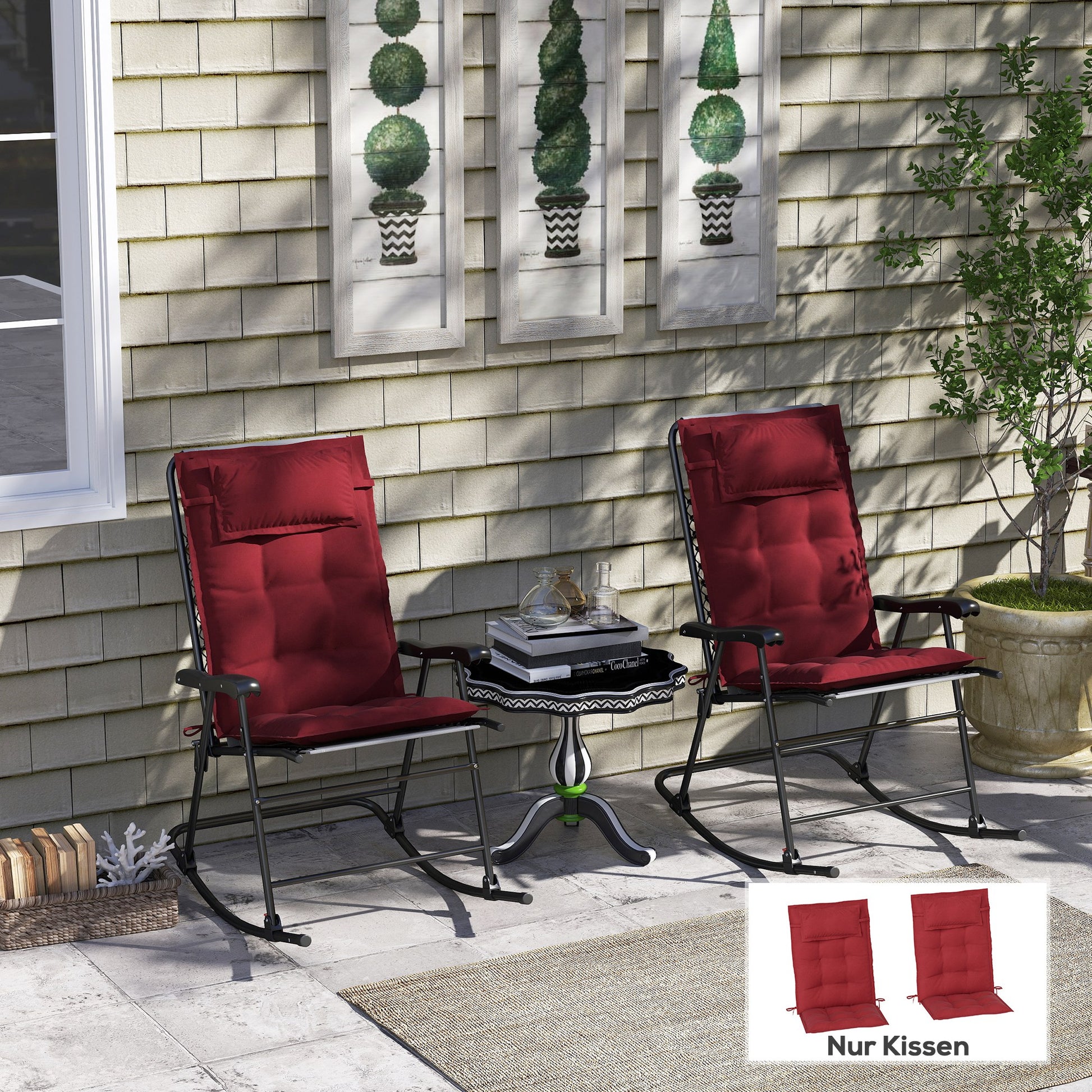 Outsunny 2-delige set waterafstotende ligstoelkussens, tuinligstoelkussens, 50x116x5 cm, bordeauxrood