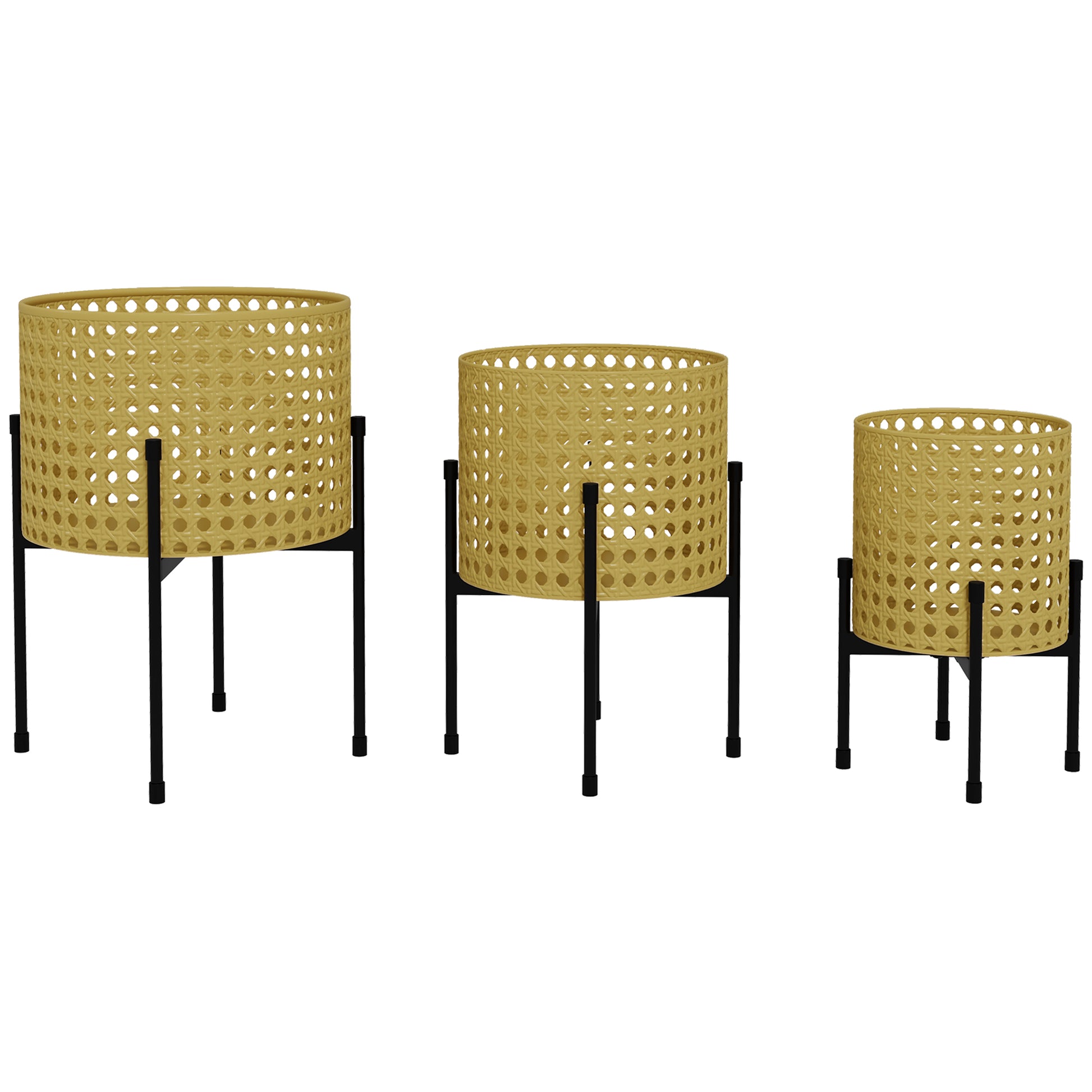 Outsunny Bloemenstandaard, Set van 3, Roestvrij Metalen Frame, Binnen- en Buitengebruik, Zwart/Goud