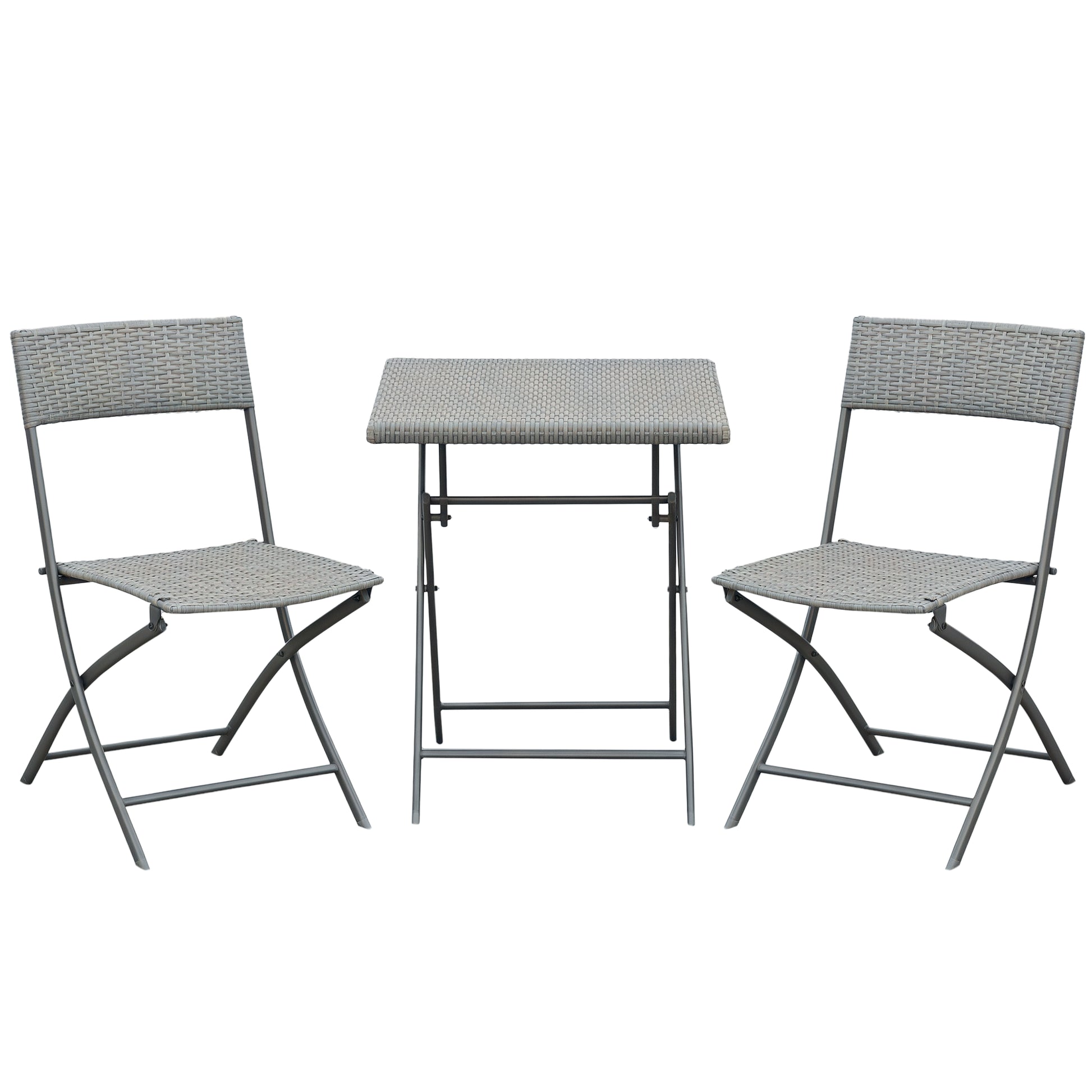 Outsunny Polyrattan Bistroset voor 2 personen, Zitgroep, Rotan Tuinmeubelset, Grijs