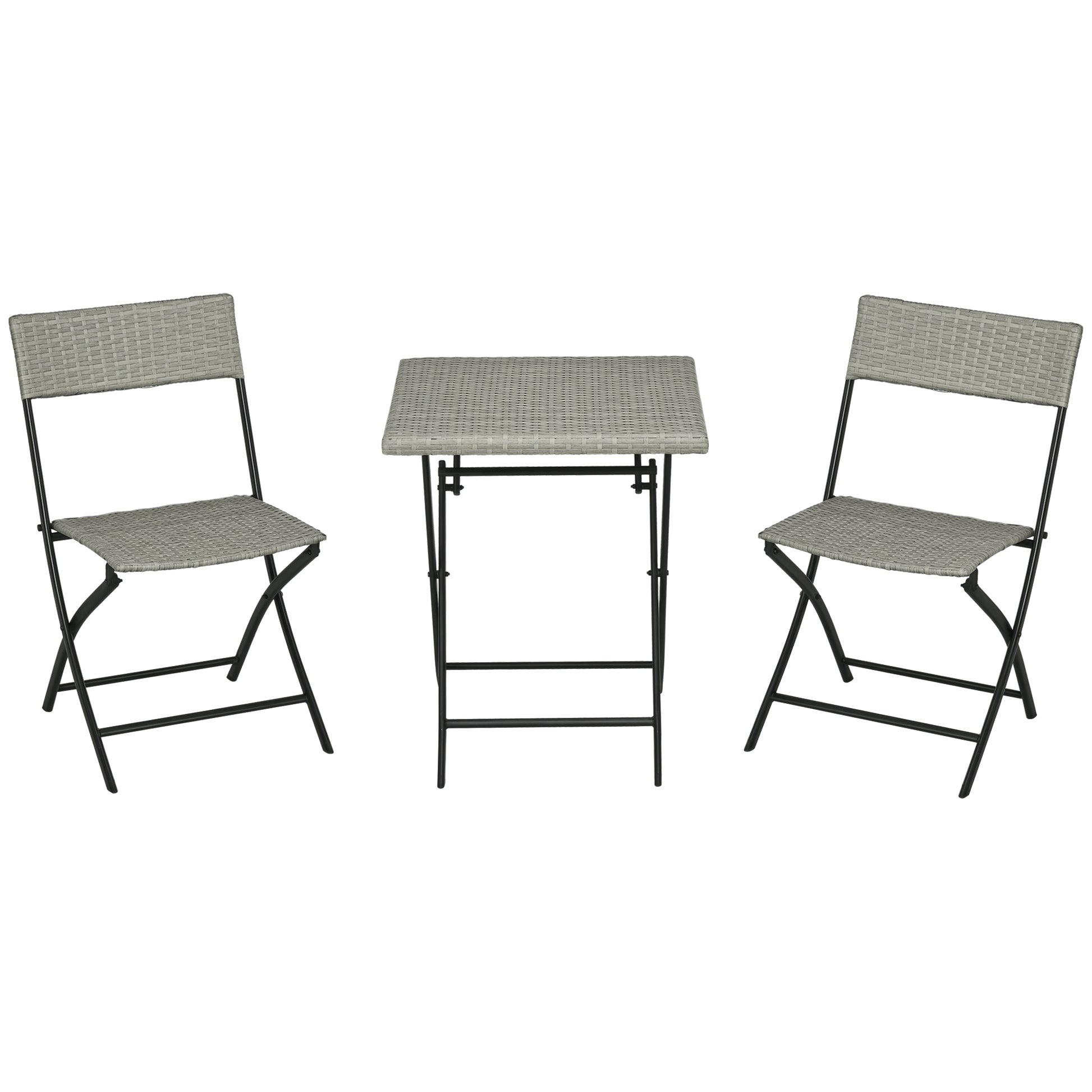Outsunny 3-delige tuinset, 2 klapstoelen, 1 klaptafel, rotanlook, metalen frame, lichtgrijs