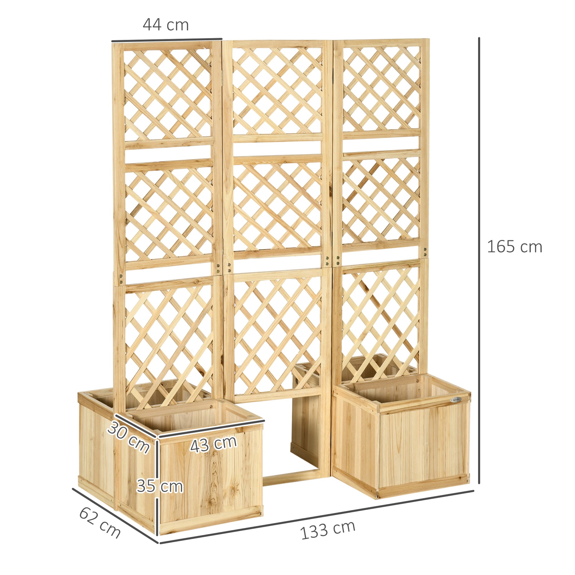 Outsunny vouwscherm, privacyscherm voor de tuin, drievoudig vouwbaar, 4 bloembakken, massief hout, natuurlijke kleur, 133 x 62 x 165 cm